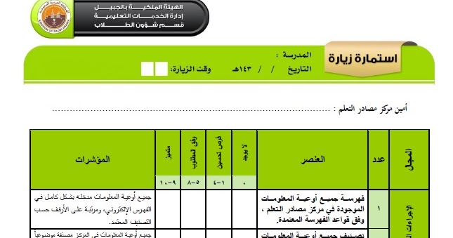 مدونة فيصل بن حمود العنزي استمارة زيارة أمين مركز مصادر التعلم
