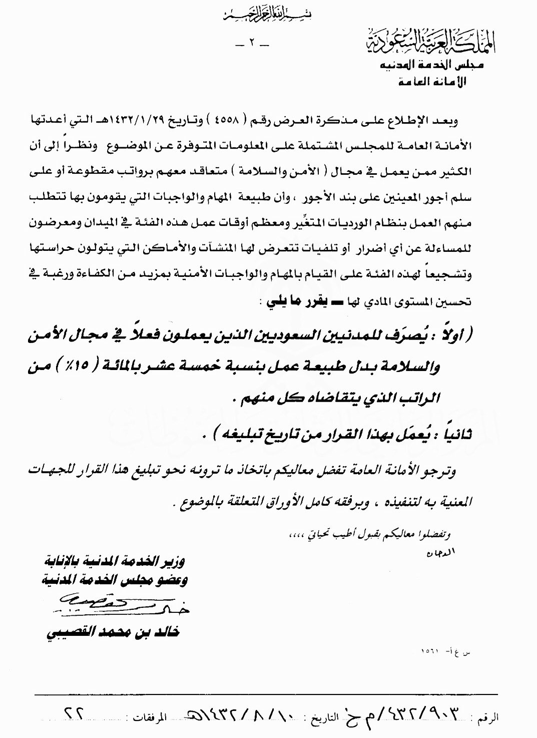 قـرار Qarar Twitter પર بدل الأمن والسلامة تم اعتماد صرفه بالقرار رقم 1561 1 وتاريخ 1432 2 11هـ على أن يصرف بنسبة 15 من الراتب الذي يتقاضاه الموظف وهو الراتب الأساسي الحالي وليس راتب الدرجة الأولى