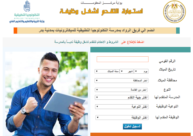اعلان وظائف التربيه والتعليم فتح باب الالتحاق بمدرسة التكنولوجيا للمعلمين والاداريين 2019