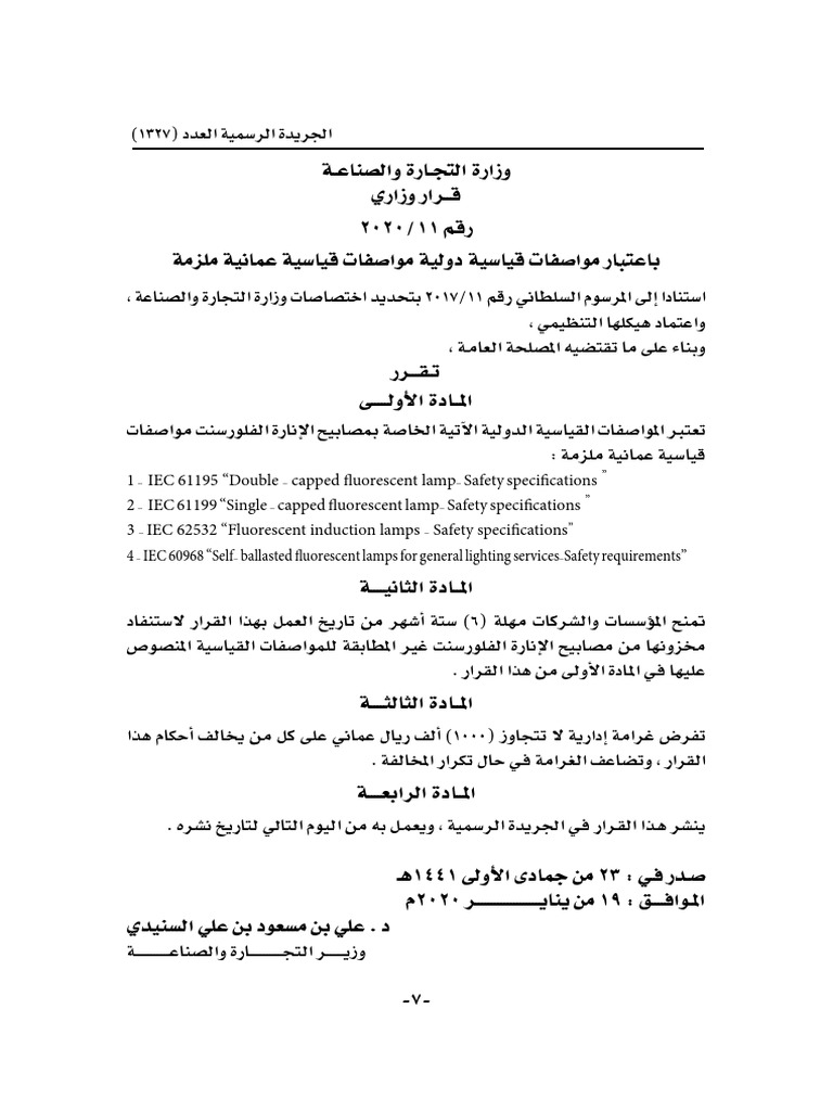 إدراج 4 أنواع من إنارة الفلورسنت ضمن مواصفات قياسية عمانية ملزمة