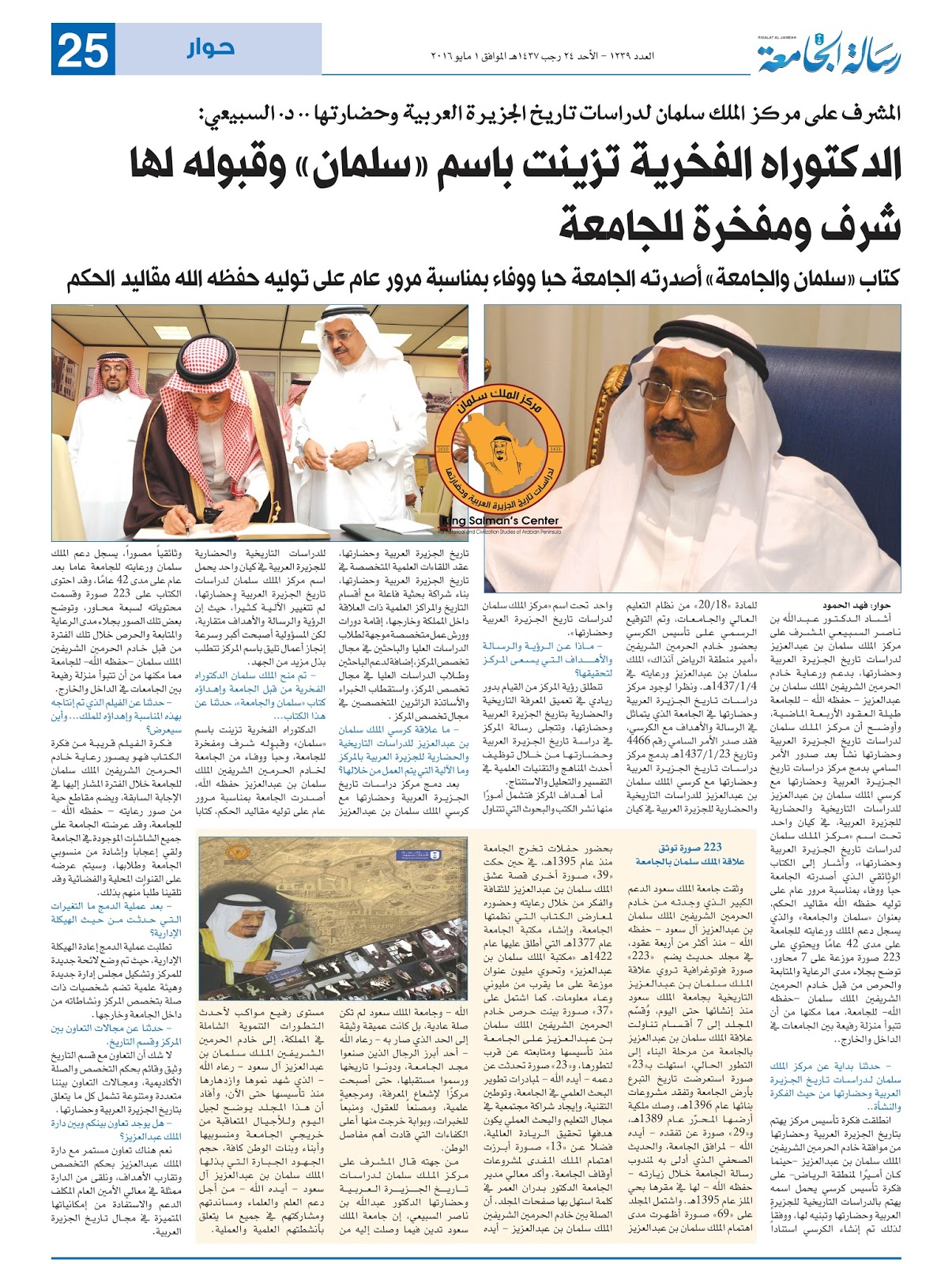 مركز الملك سلمان لدراسات تاريخ الجزيرة العربية وحضارتها مايو 2016