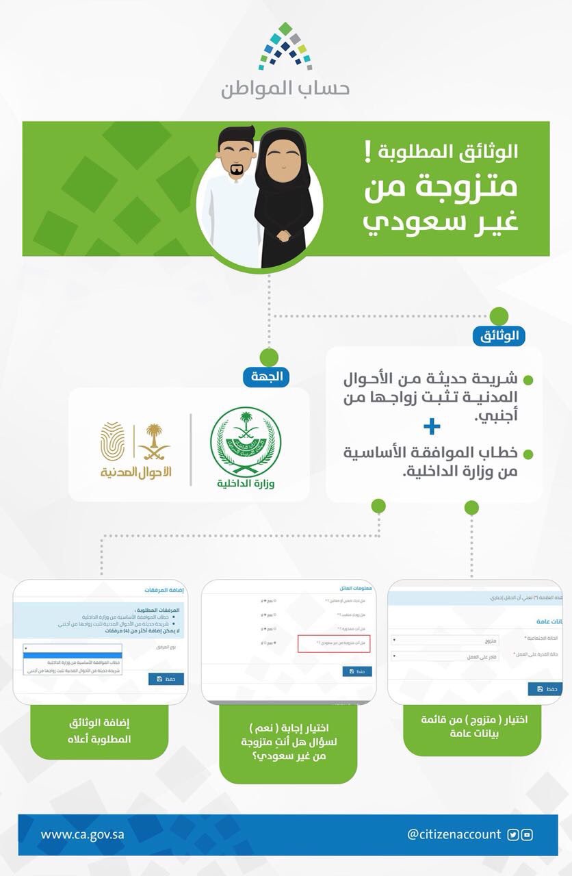 أخبار السعودية En Twitter حساب المواطن المواطنة السعودية المتزوجة من غير سعودي يمكنها التسجيل في الحساب والاستفادة من الدعم مع إضافة الوثائق التي تثبت حالتها حساب المواطن السعودية المرأة Https T Co Ooa5zwrnlk