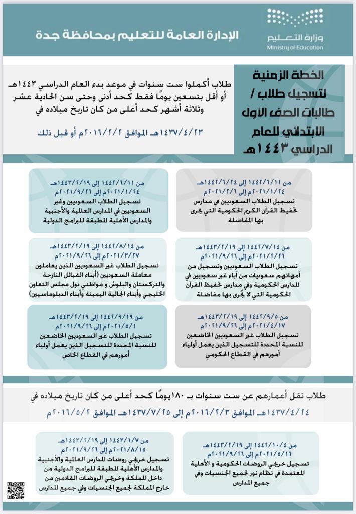 إدارة تعليم جدة على تويتر إعلان الخطة الزمنية لتسجيل الطلاب والطالبات المستجدين بالصف الأول الابتدائي للعام الدراسي القادم 1443 هـ عبر نظام نور تعليم جده Https T Co H2ziwfvt6l