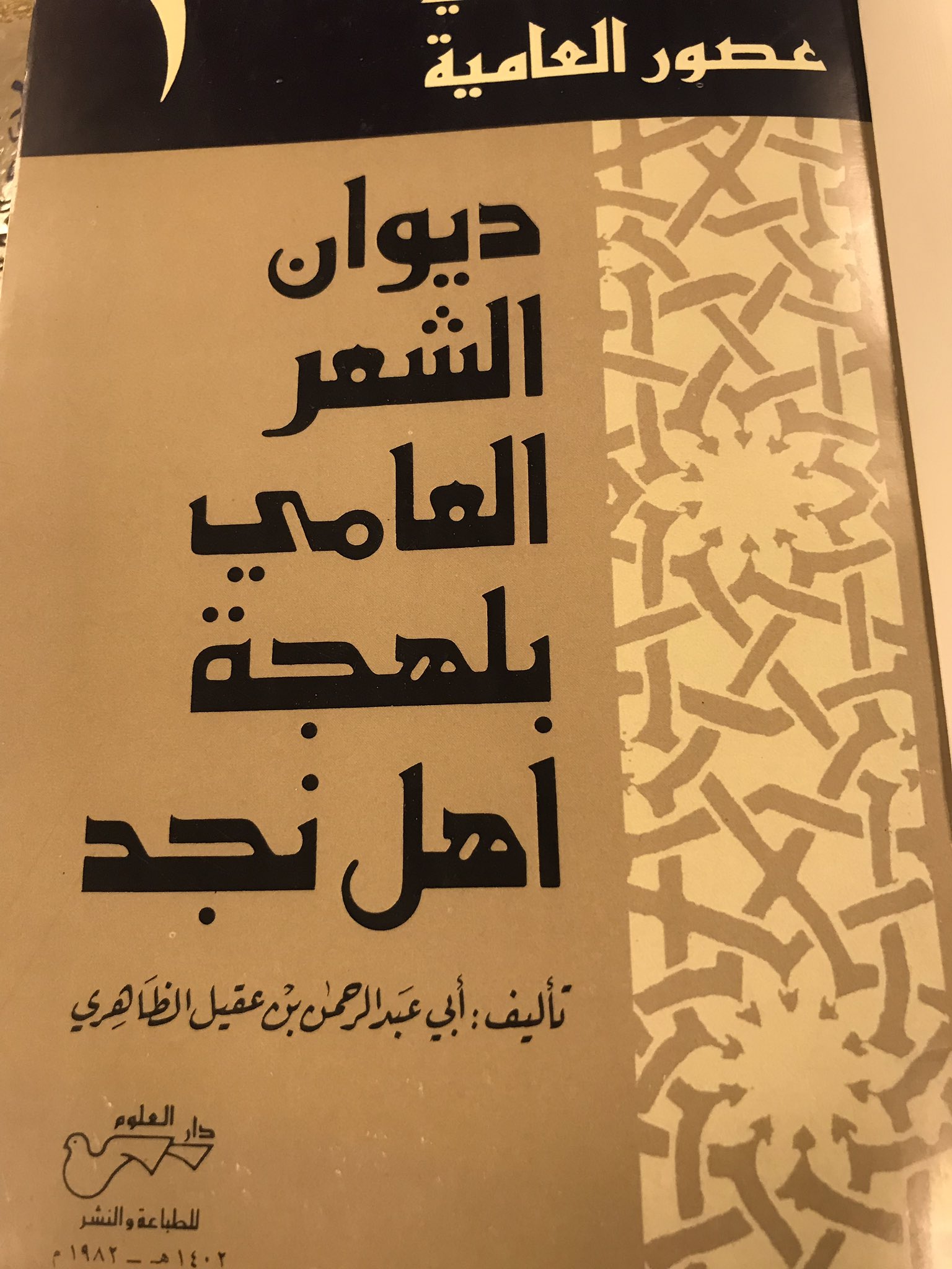 الثلوثية V Tvittere كتاب ديوان الشعر العامي بلهجة أهل نجد من تأليف شيخنا أبو عبد الرحمن بن عقيل الظاهري ومن منشورات دار العلوم بالرياض سنة 1402هـ أجزم أنه من أنفس وأعجب ما