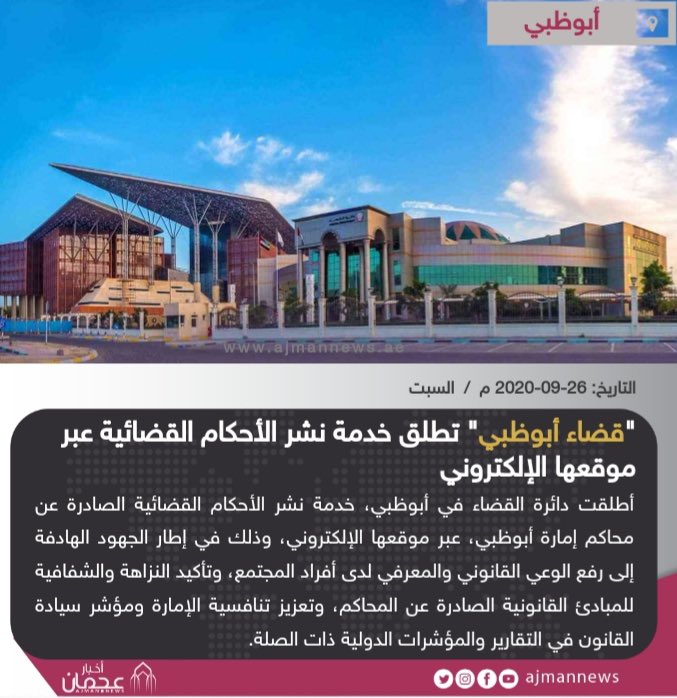 أخبار عجمان قضاء أبوظبي تطلق خدمة نشر الأحكام القضائية عبر موقعها الإلكتروني أخبار الإمارات أبوظبي