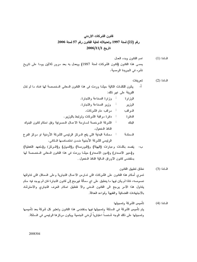 قانون الشركات الأردني Pdf
