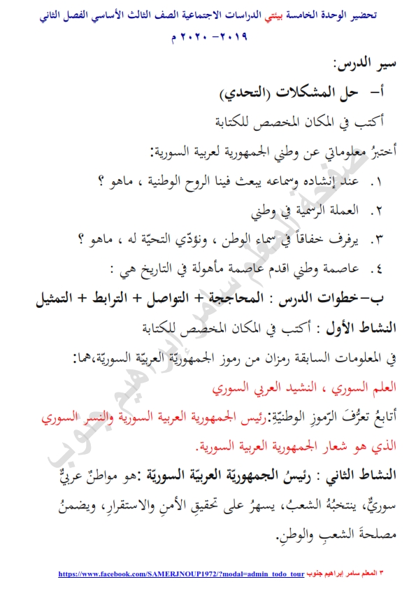تحضير الوحدة السادسة وطني في الدراسات الاجتماعية الصف الثالث الأساسي الفصل الثاني 2019 2020