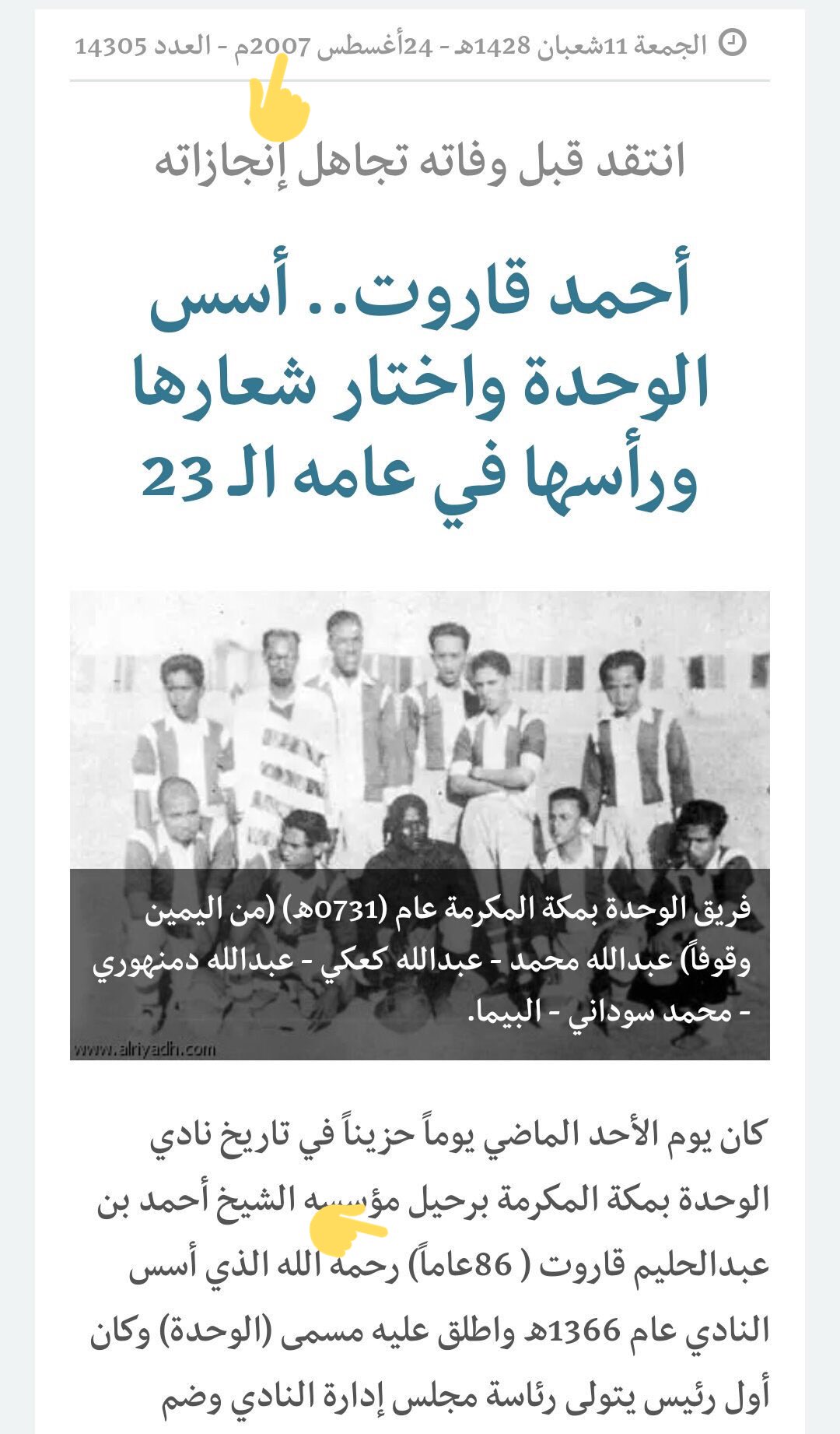 أحمد قاروت أسس الوحدة واختار شعارها ورأسها في عامه الـ 23 جريدة الرياض